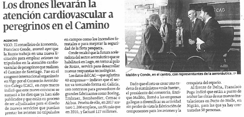 El Consorcio Aeronáutico Gallego (CAG) anima a las empresas gallegas a diversificar su actividad para consolidarse en la industria aeronáutica y aeroespacial, y crear “una cadena de suministros más fuerte”, para atraer a las grandes constructoras. Así lo señaló el presidente del Consorcio, Enrique Mallón, en el II Congreso Internacional Aeronáutico y Espacial de Galicia. Según auguró, el sector aeronáutico, junto con la eólica marina, van a ser las industrias que den “más satisfacciones” a nivel empresarial en Galicia.