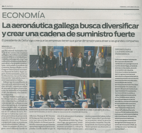 Enrique Mallón recordó que, en los últimos tres años, administración y empresas han realizado inversiones por 100 millones en esta industria y que más de 40 empresas forman ya parte del CAG, generan 1.200 empleos y una facturación de más de 127 millones de euros. Precisó que en Galicia hay cuatro empresas proveedoras de primer nivel, y más de 30 firmas proveedoras de segundo y tercer nivel. “Estamos consiguiendo crear un ecosistema industrial aeronáutico”, afirmó.